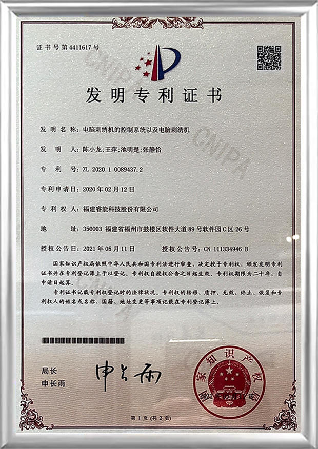 ● প্রবর্তিত এমব্রয়ডারি মেশিন ইলেকট্রনিক কন্ট্রোল সিস্টেম যেমন RN সিরিজ মাল্টি-হেড এমব্রয়ডারি মেশিন, JD সিরিজের পরিবারের একক-হেড এমব্রয়ডারি মেশিন, SD সিরিজের বাণিজ্যিক একক-হেড এমব্রয়ডারি মেশিন