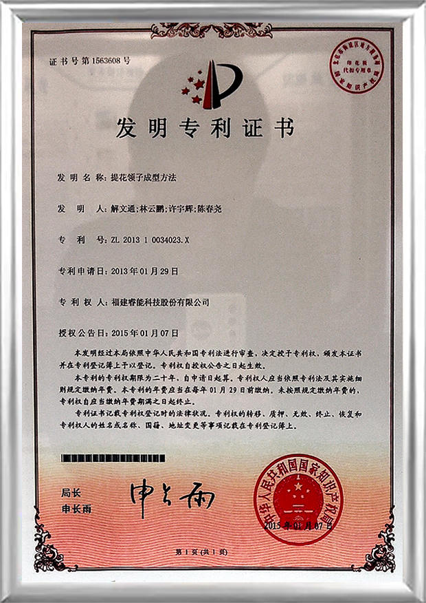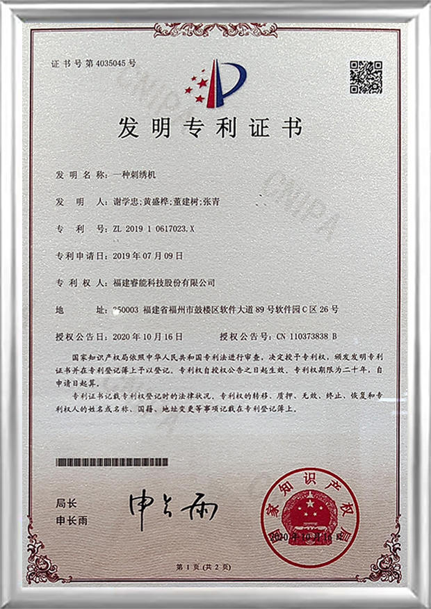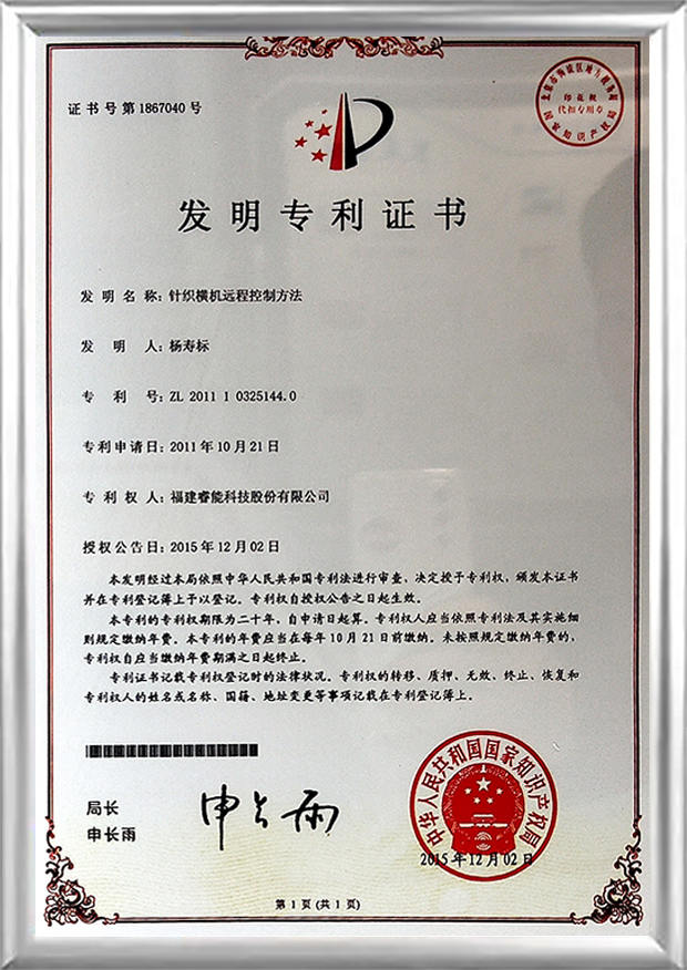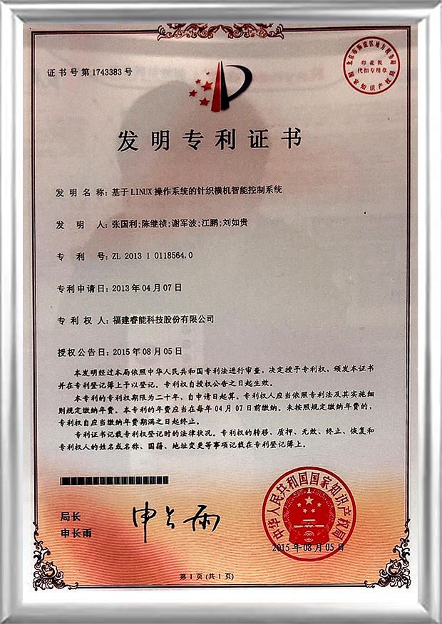 ● "F4000 ফ্ল্যাট নিটিং মেশিন ইন্টেলিজেন্ট কন্ট্রোল সিস্টেম" ফুজিয়ান বিজ্ঞান ও প্রযুক্তি পুরস্কারের তৃতীয় পুরস্কার জিতেছে।