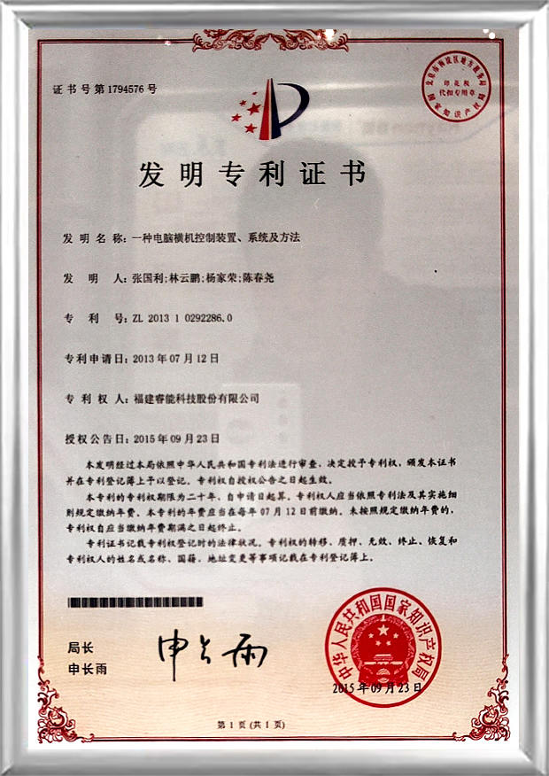 ● "চায়না টেক্সটাইল মেশিনারি ইন্ডাস্ট্রি কম্পিউটার ফ্ল্যাট নিটিং মেশিন ইন্টেলিজেন্ট কন্ট্রোল সিস্টেম প্রোডাক্ট R&D সেন্টার" হিসাবে স্বীকৃত।