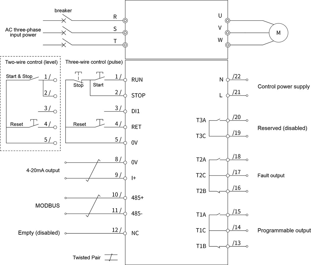 | রেট পাওয়ার সাপ্লাই ভোল্টেজ | তিন-ফেজ 380V~480V (-10%~ 15%) |