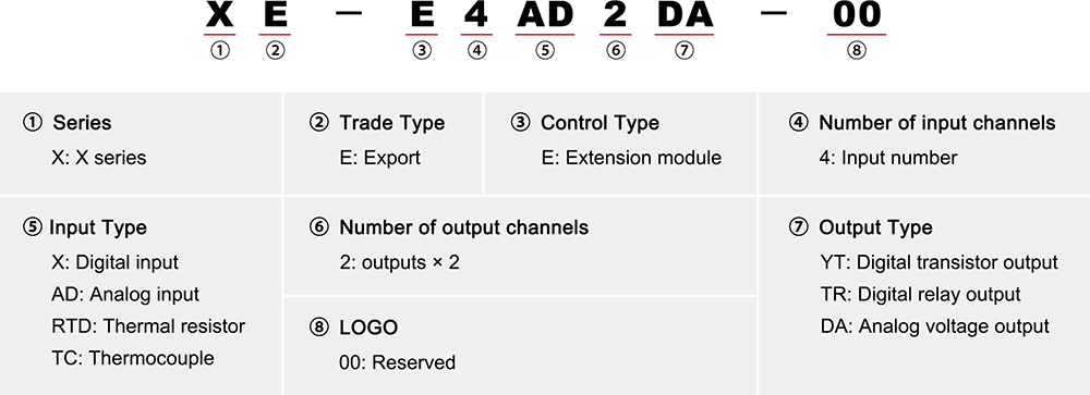 | 5 | X-E4RTD-00 | এক্স সিরিজ সার্বজনীন তাপমাত্রা নিয়ন্ত্রণ সম্প্রসারণ মডিউল, চ্যানেল তাপ প্রতিরোধক × 4, 16 বিট |