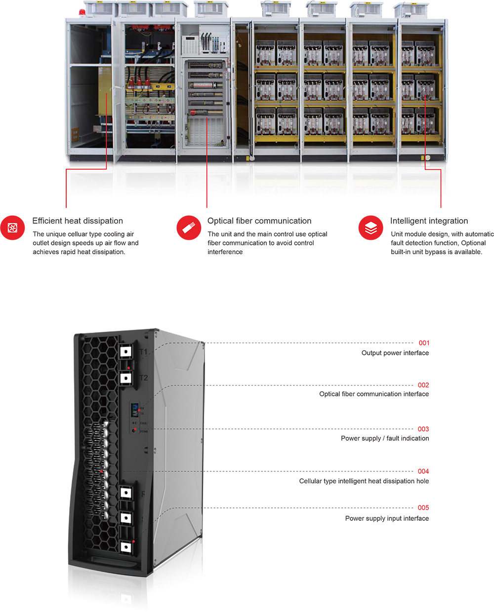 | প্রধান সুরক্ষা ফাংশন | ওভারভোল্টেজ, ওভারকারেন্ট, শর্ট সার্কিট, ওভারহিটিং, অপটিক্যাল ফাইবার ইত্যাদি |